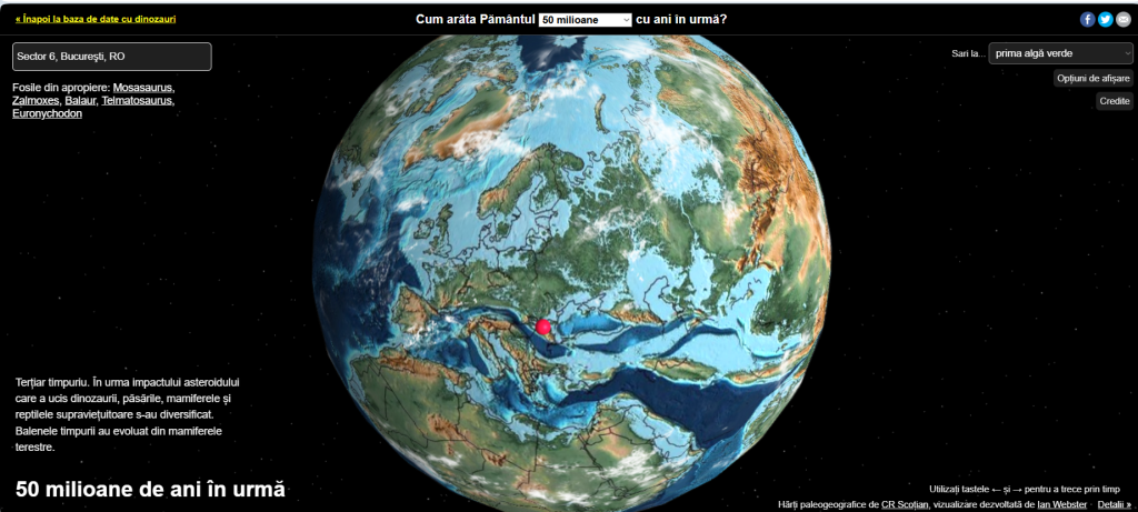 DinosaurPictures.org este o platformă online gratuită dedicată universului dinozaurilor și lumii preistorice, care combină imagini științifice, informații paleontologice și hărți interactive ale Pământului antic. Site-ul oferă o bază de date cu sute de specii preistorice, ilustrații detaliate și, cel mai interesant pentru geografii și elevii din ciclul gimnazial și liceal, un glob interactiv al Pământului de acum milioane de ani.
