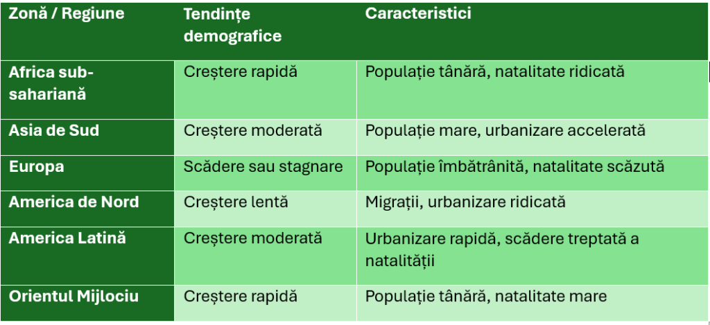 Analizarea evoluției populației la nivel global și regional;