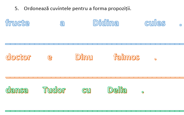1.3. Identificarea sunetului iniţial şi/ sau final dintr-un cuvânt, a silabelor şi a cuvintelor din propoziţii rostite clar şi rar.