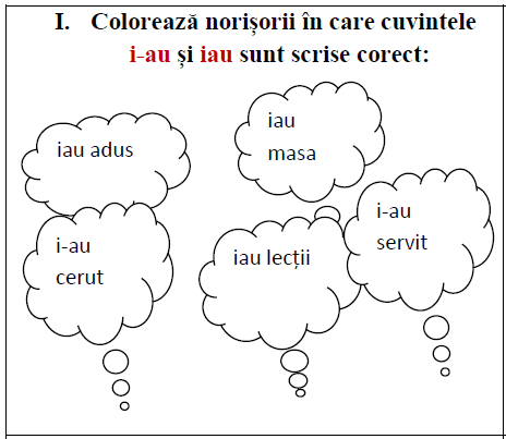 Colorează norișorii (steluța) cu ortograma potrivită.