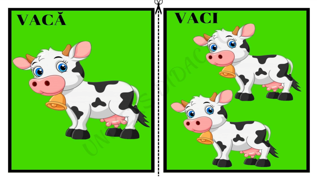 2. Identificarea formelor de singular (ex.: o vacă, un cal, o oaie);